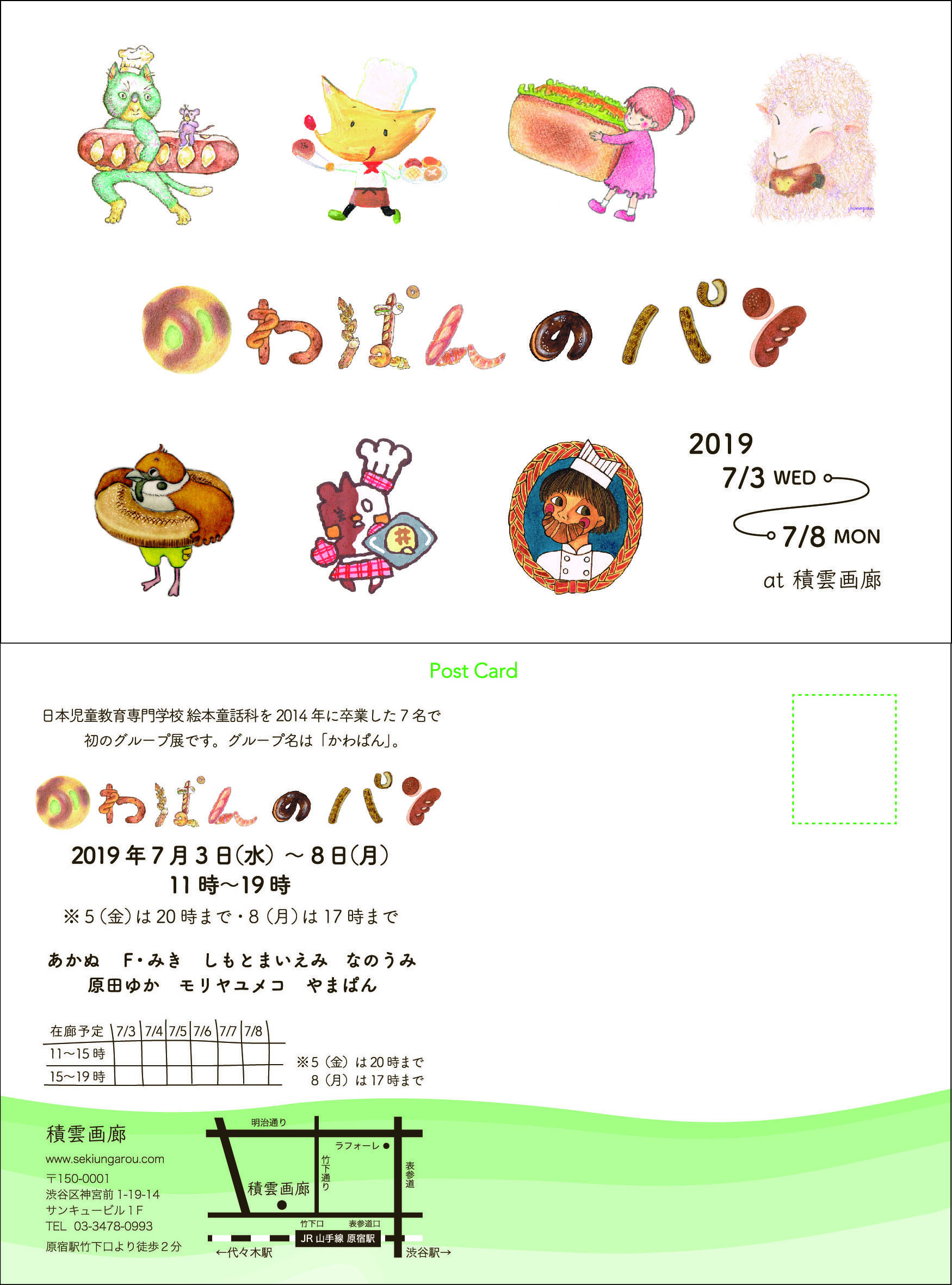 2020年7月1日(水)〜7月6日(月)に積雲画廊で予定していたかわぱんのグループ展は、中止になりました。